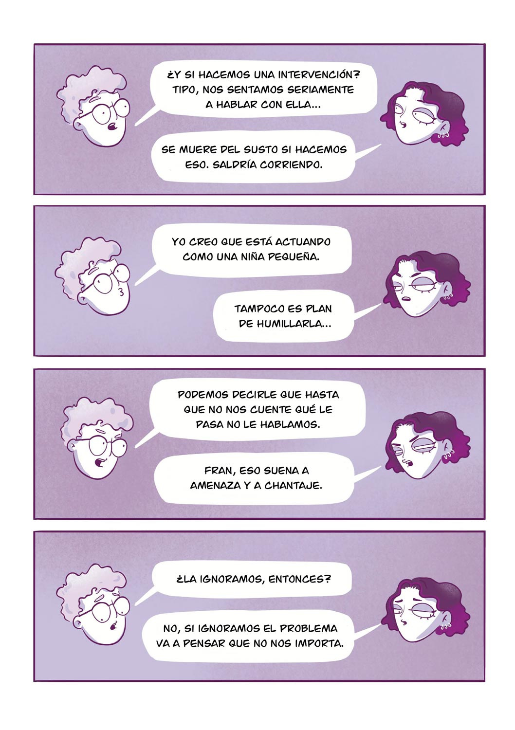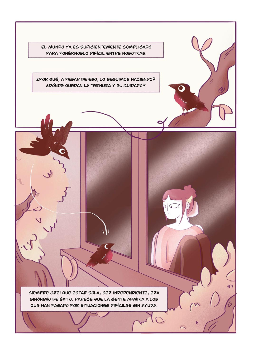 Cuidando con Miedo es la segunda parte de Comiendo con Miedo, un cómic autobiográfico que aborda los trastornos de la conducta alimentaria. Si el primero ponía voz a quien los padece, esta historia amplía la mirada y se centra en quienes cuidan y acompañan.